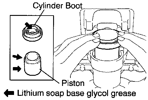 a. Apply lithium soap base glycol grease to the rear disc brake piston and a new cylinder boot.