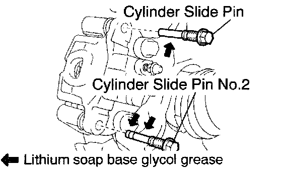 NOTICE: Do not damage the front disc brake cylinder slide pin No.2.
