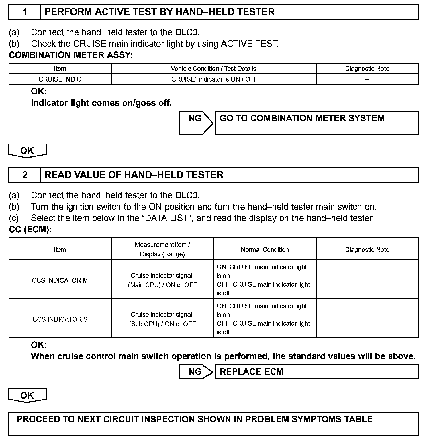- The ECM detects a cruise control switch signal and sends it to the combination meter via BEAN. Then the CRUISE main indicator light comes on.