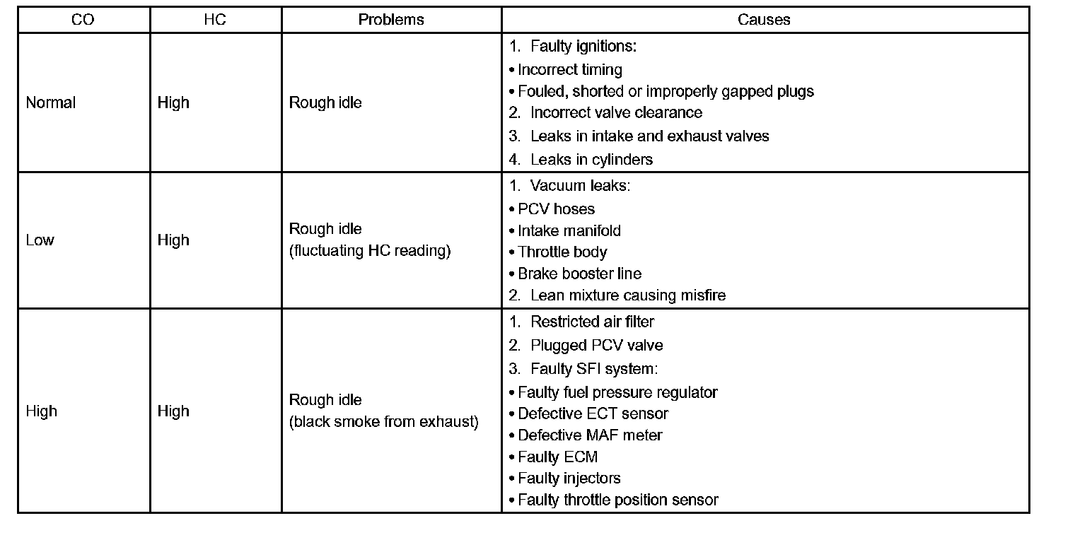 HINT: Check regulations and restrictions in your area when performing 2 mode CO/HC concentration testing (engine check at both idle speed and at 2,500 rpm).