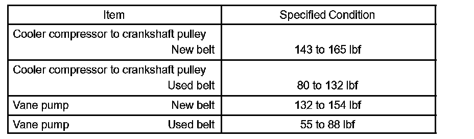 ^ "New belt" is a belt which has been used for less than 5 minutes on a running engine.