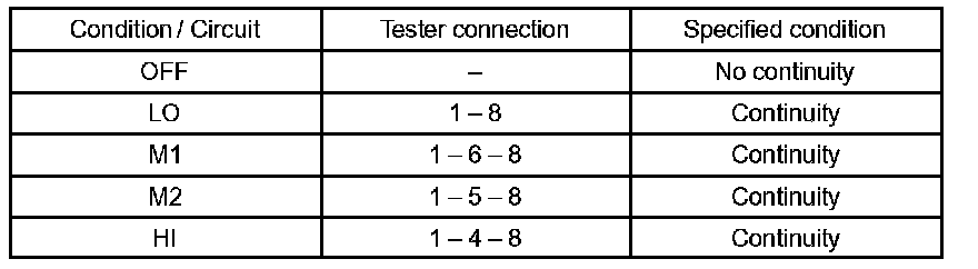 HEATER BLOWER SWITCH (MANUAL AIR CONDITIONER)a. Inspect blower switch continuity.