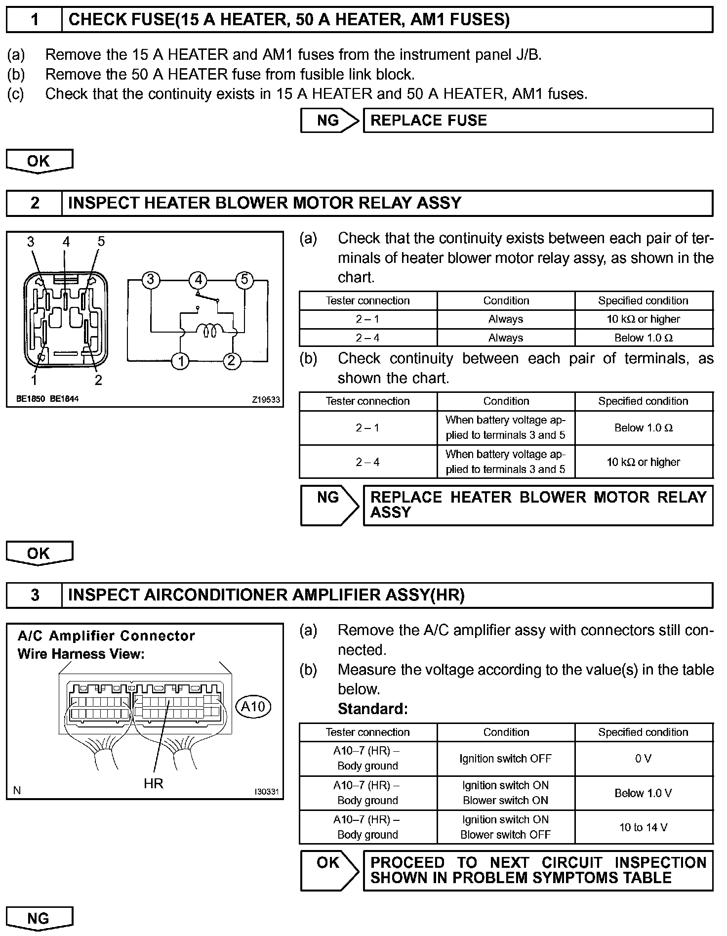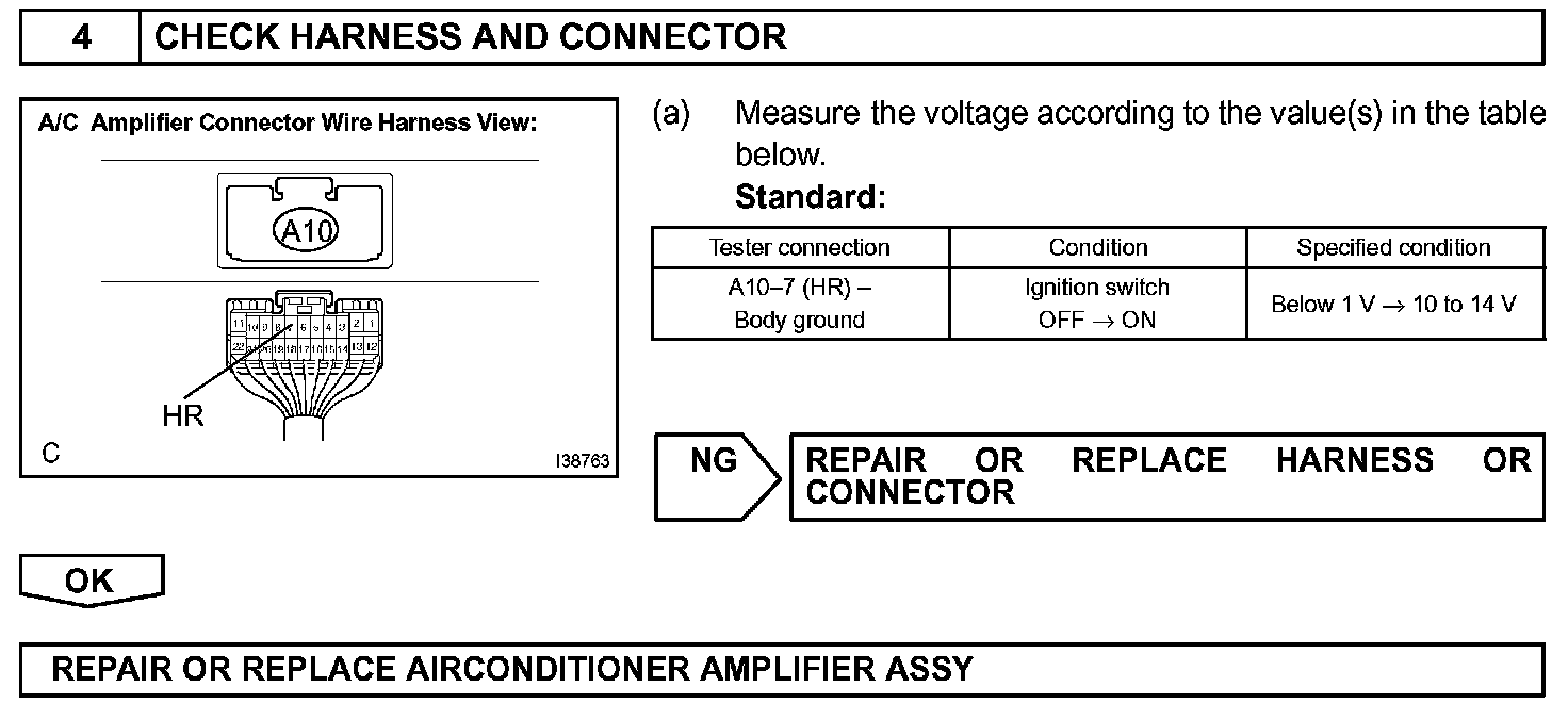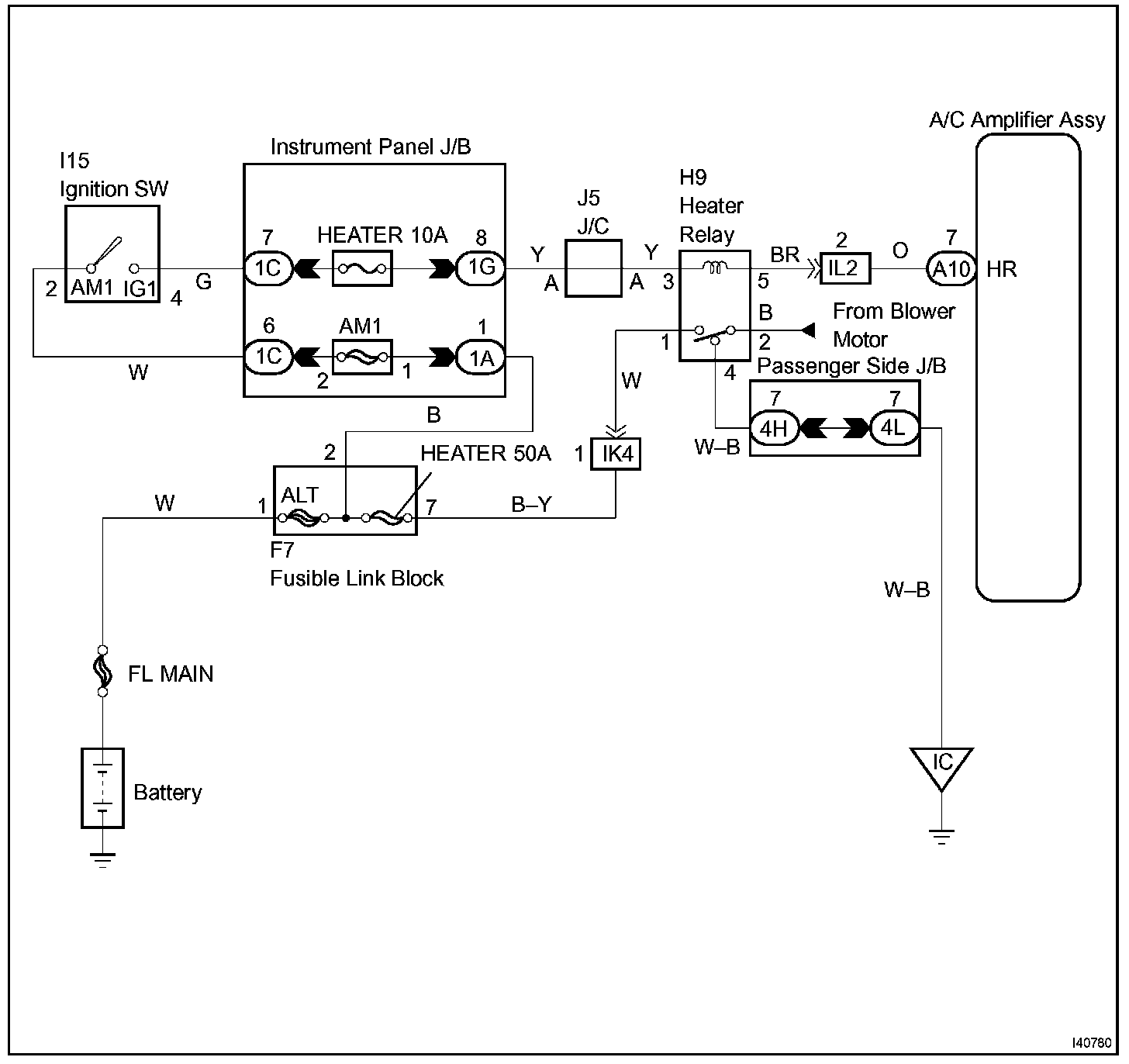 The heater relay is switched on by signals from the A/C amplifier assy. It supplies power to the