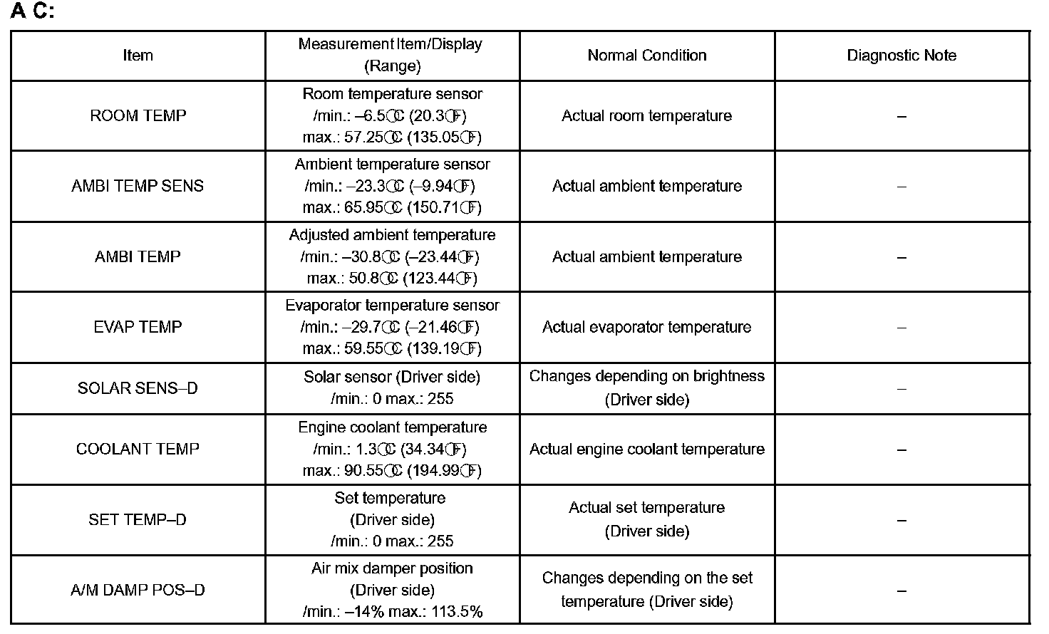 DATA LISTHINT: From the DATA LIST displayed on the hand-held tester, you can read the values of the displays, sensors, actuators and so on without parts removal. Reading the DATA LIST as the first step of troubleshooting is one way to shorten labor time.