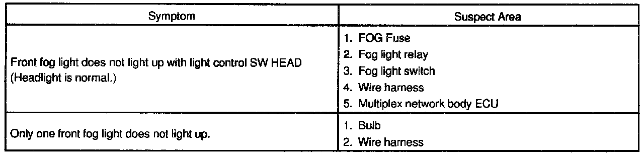 Problem Symptoms Table - Fog Light System: