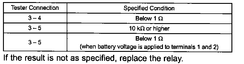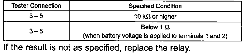 If the result is not as specified, replace the relay.