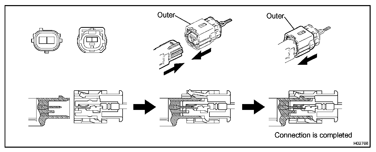 a. Connect the connector as shown in the illustration. (When locking, make sure that the outer returns to its original position and a click sound can be heard.)