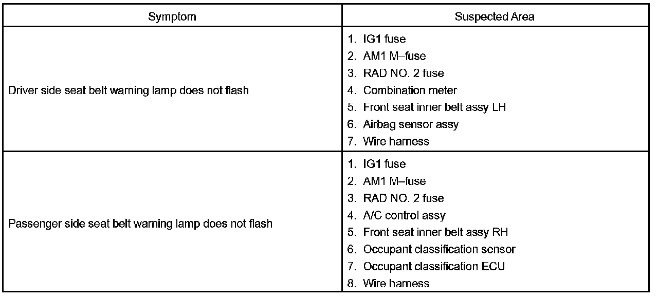 PROBLEM SYMPTOMS TABLEProblem Symptoms Table - Seat Belt Warning System: