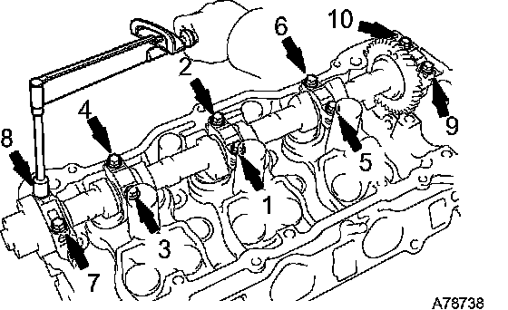 Uniformly tighten the 10 bearing cap bolts in the sequence shown in the illustration.