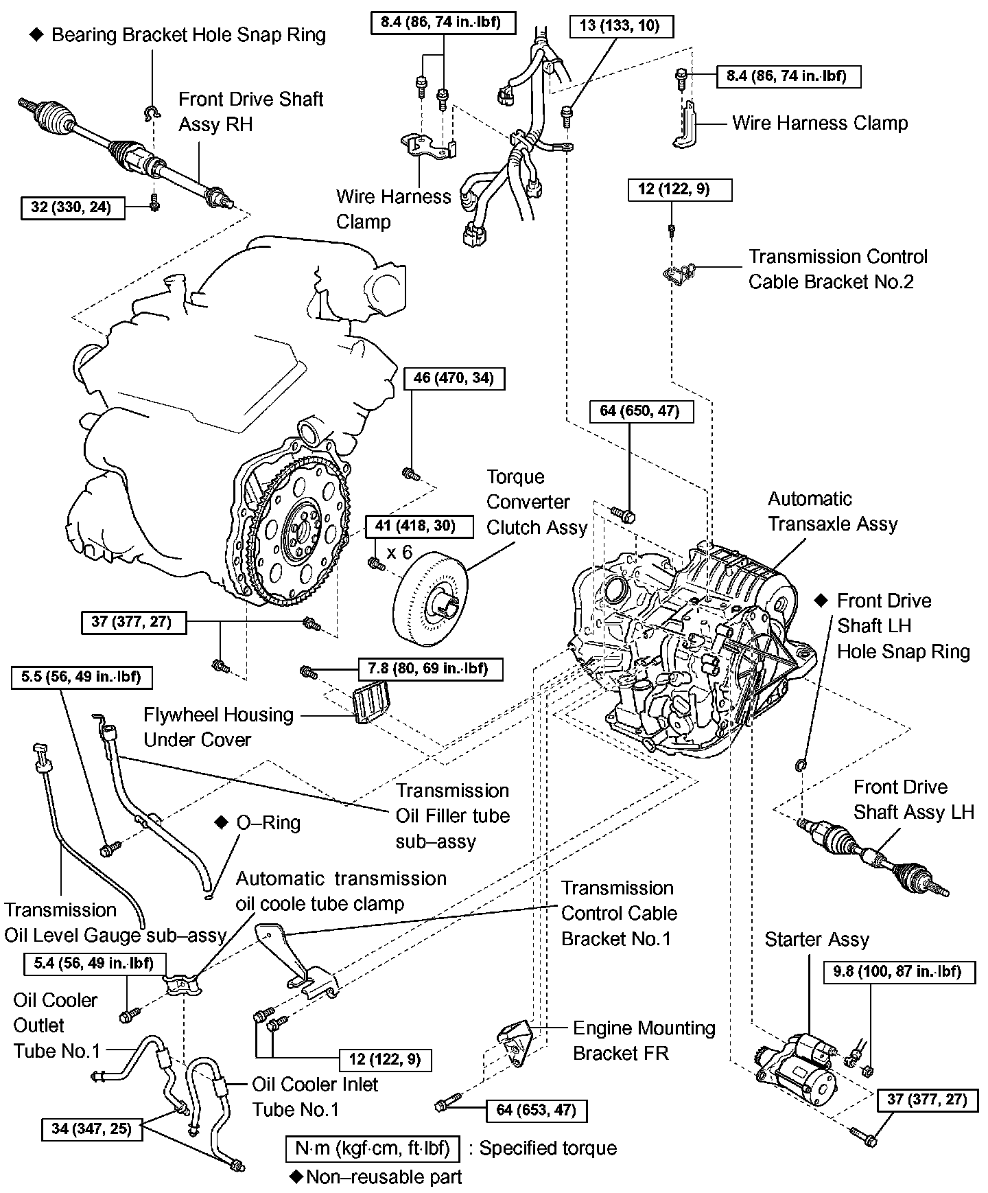 Bolts A: 64 Nm (650 kgf-cm, 47 ft. lbs.)