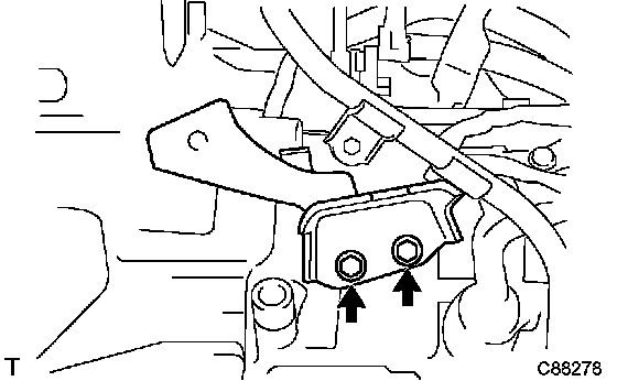 b. Remove the 2 bolts and transmission control cable bracket No.1.