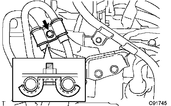 HINT: Install the automatic transmission oil cooler tube clamp and bolt so that the oil cooler tube cushion is positioned as illustrated.