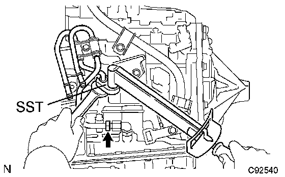 a. Using SST and a spanner, disconnect the oil cooler inlet tube No. 1.