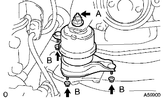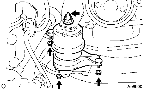 d. Remove the 4 nuts from the engine mounting insulator RH.