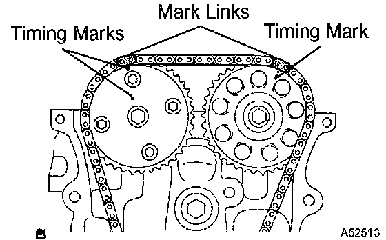 c. Align the mark links (yellow colored links) with the timing marks of the sprocket as shown in the illustration.