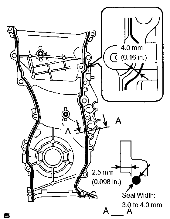 c. Apply seal packing in a continuous bead (seal width: 3.0 to 4.0 mm (0.12 to 0.16 inch) as shown in the illustration.