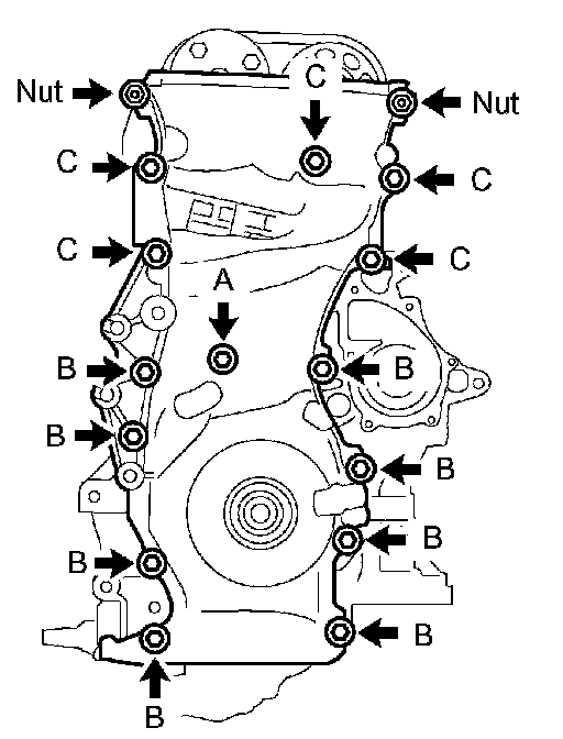 87 Nm (887 kgf-cm, 64 ft. lbs.) for bolt B