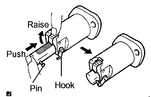 a. Release the ratchet pawl, fully push in the plunger and apply the hook to the pin so that the plunger cannot spring out.