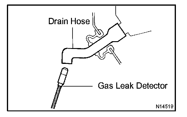 - When bringing the gas leak detector close to the drain hose, make sure that the gas leak detector does not react to the volatile gases.