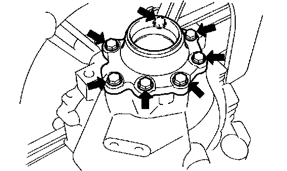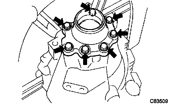 c. Install the transfer assembly to the transaxle assembly with the 2 bolts and 6 nuts.