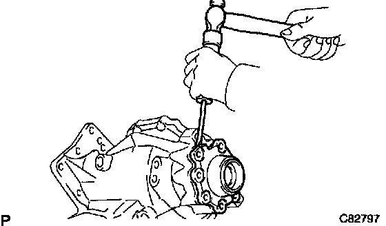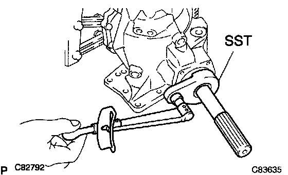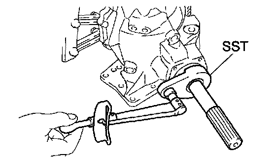 a. Using SST and a torque wrench, measure the initial torque with the driven pinion being contact with the ring gear face.