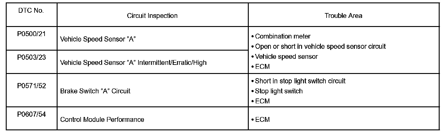 If a malfunction code is displayed during the DTC check, check the circuit listed for that code in the table.