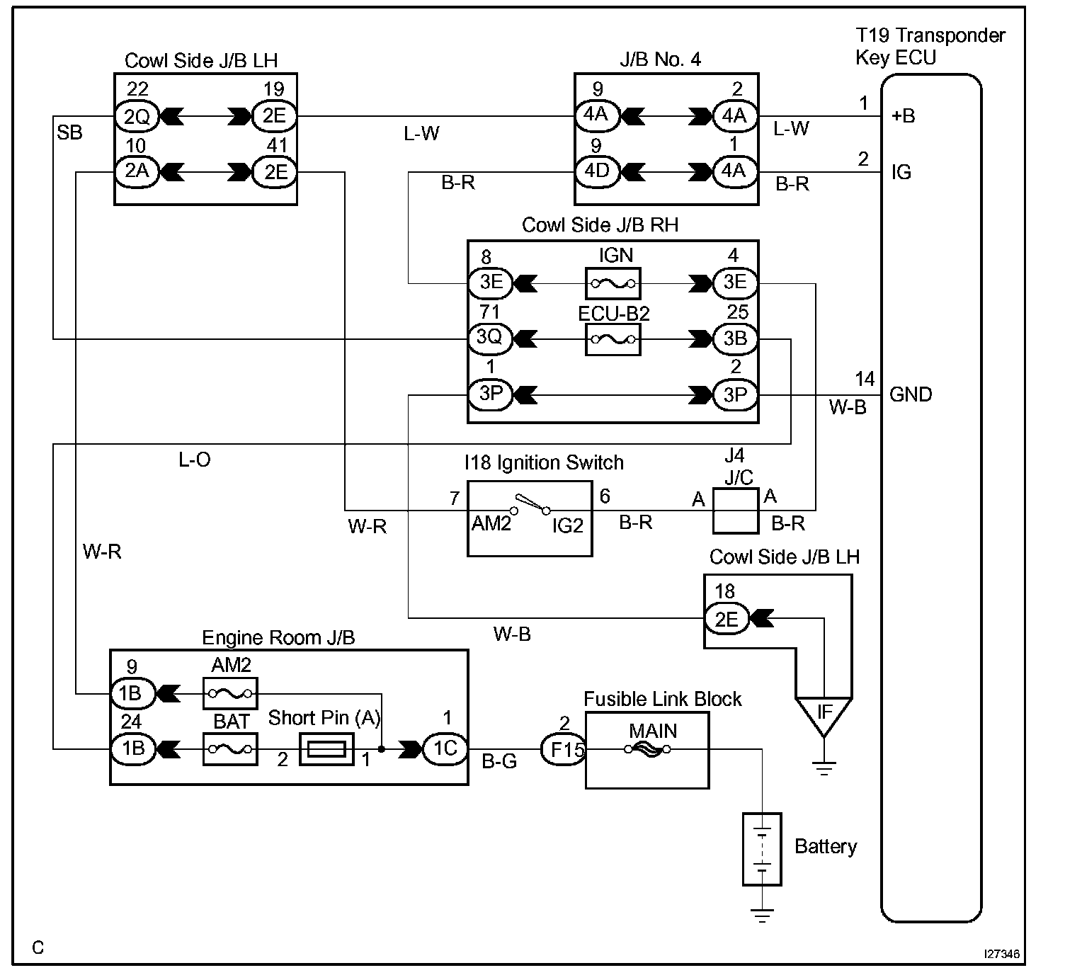 This circuit provides power to operate the Transponder Key ECU.