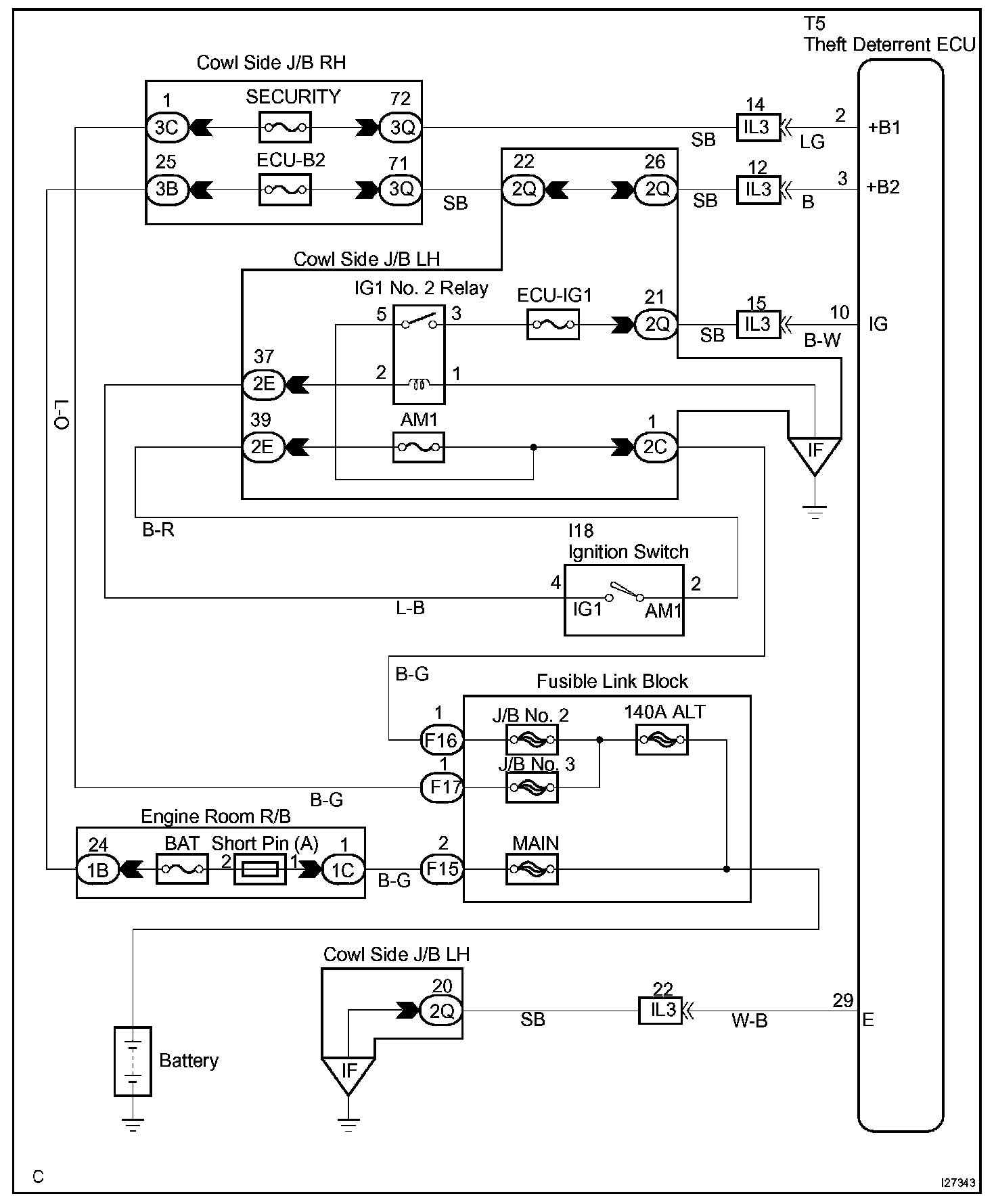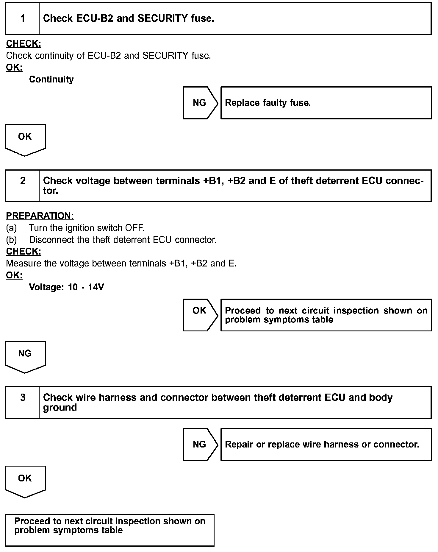 When the battery positive voltage is applied to the terminal IG of the ECU while the theft deterrent system is activated, the warning stops.