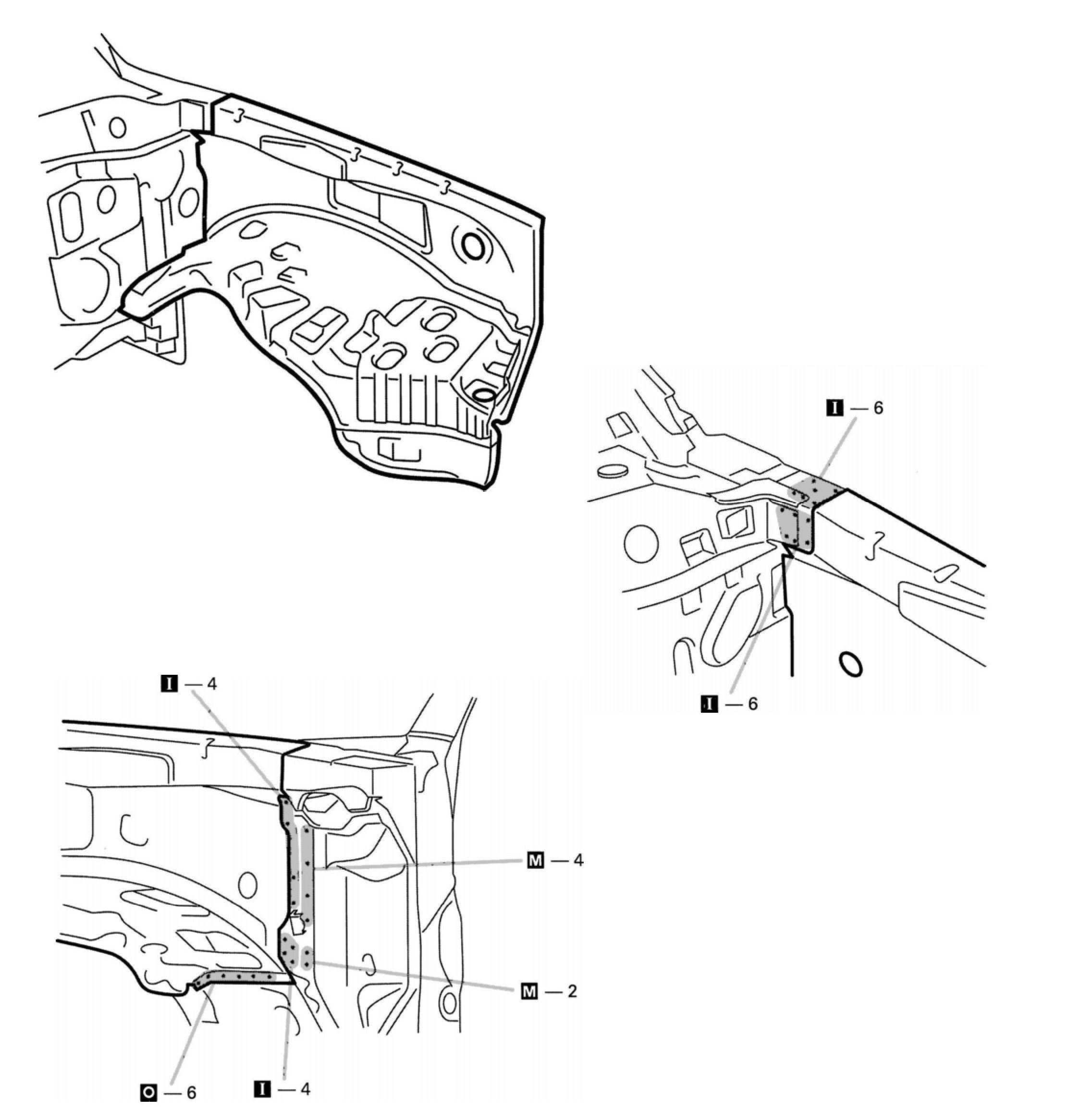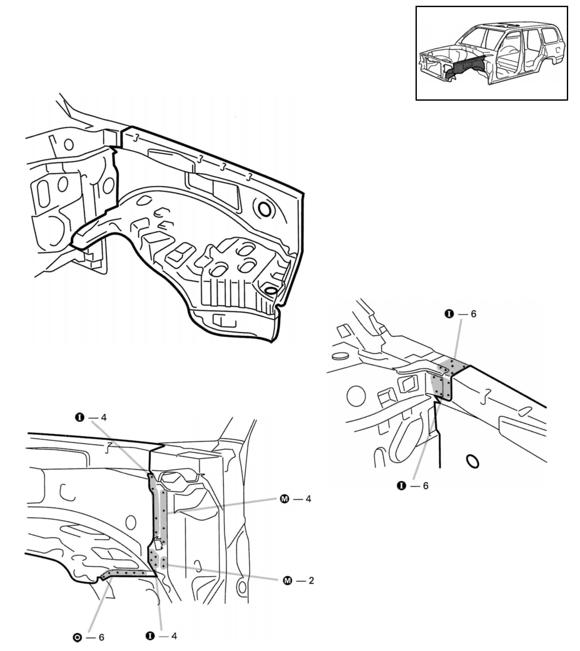 1. Temporarily install the new parts and measure each part in accordance with the body dimension diagram.