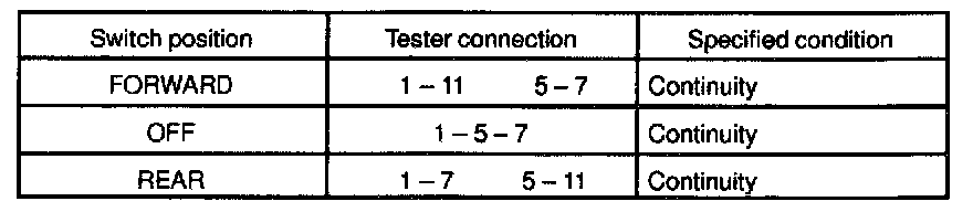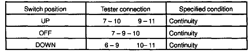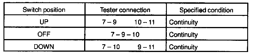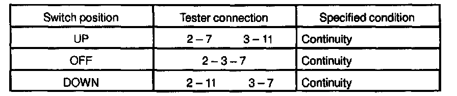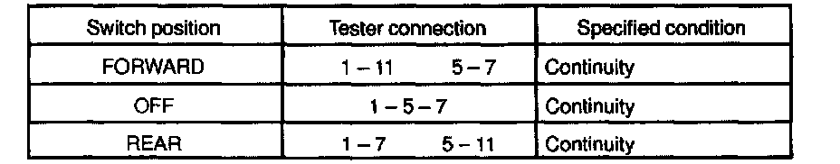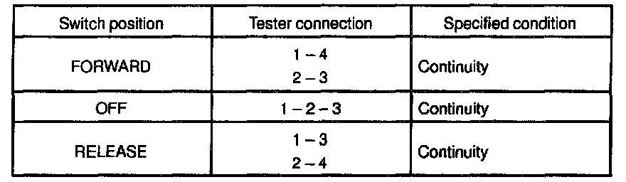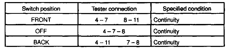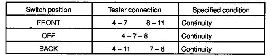 If continuity is not as specified, replace the switch.