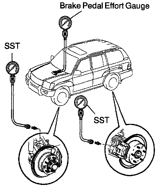 c. Install LSPV gauge (SST and brake pedal effort gauge, bleed air.