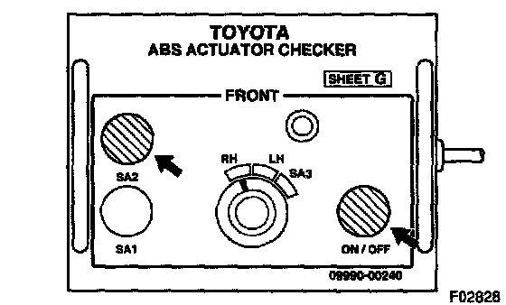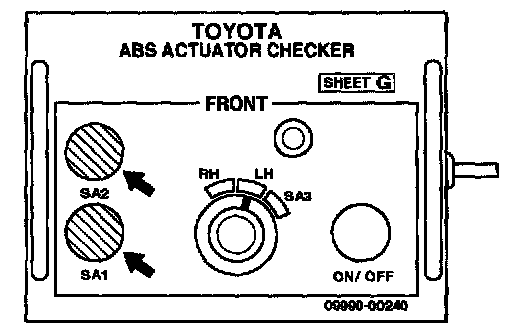 1. Select "SA1" and "SA2" turned ON simultaneously with the TOYOTA hand-held tester, depress the brake pedal with stable force and check that the pedal cannot be depressed.
