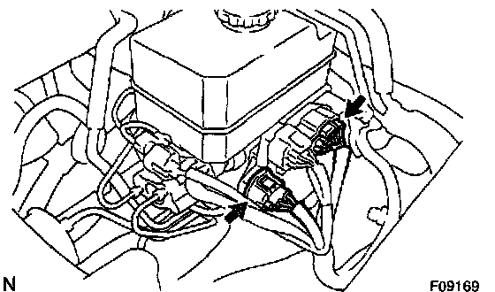 b. Disconnect the 2 connectors from hydraulic brake booster.