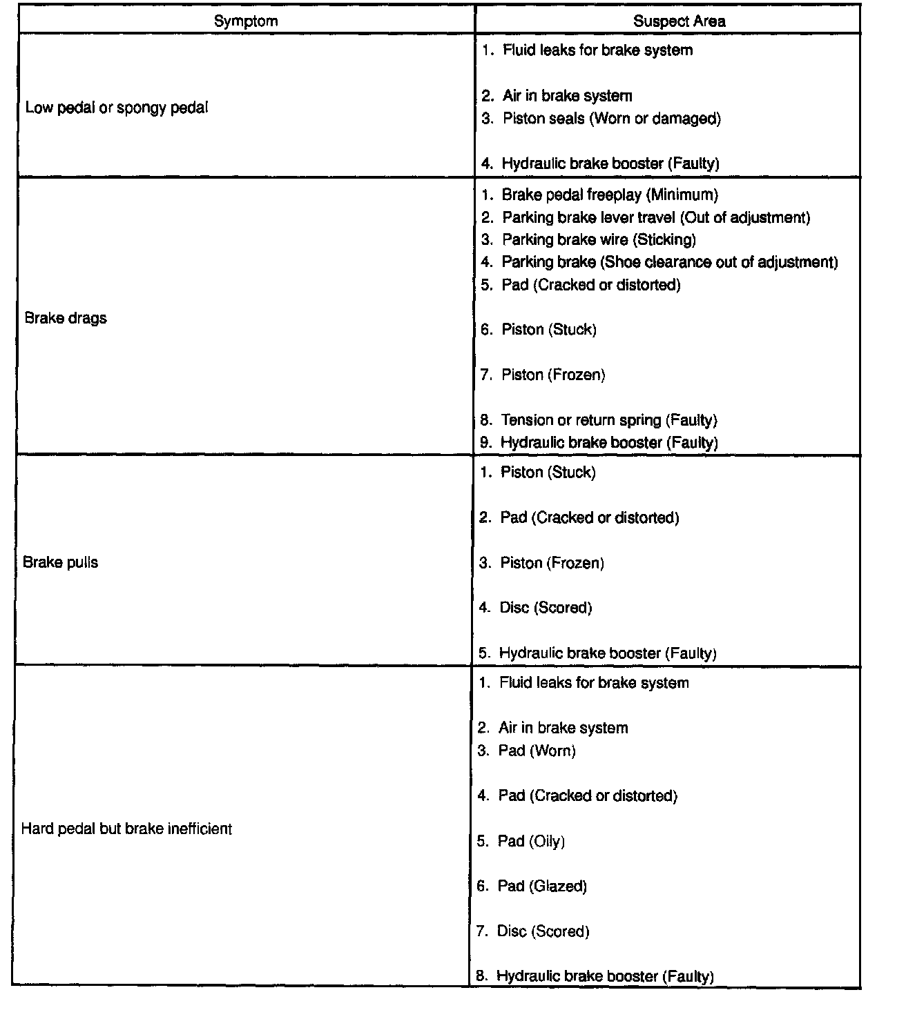 PROBLEM SYMPTOMS TABLEPart 1 Of 2: