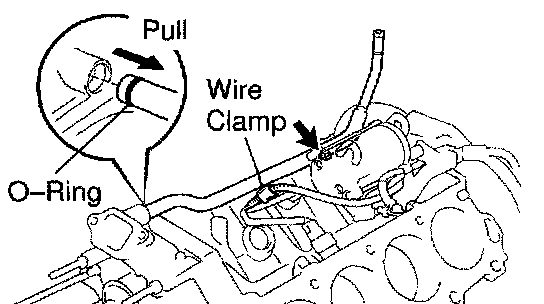 Remove the 2 bolts, and disconnect the Z brackets on the engine wire from the cylinder block.