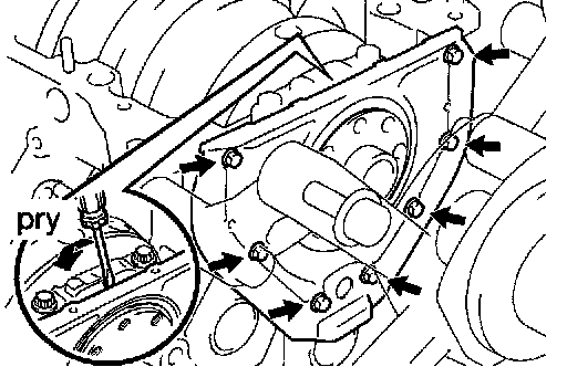 Remove the 4 bolts and the mounting bracket. Remove the 2 mounting brackets