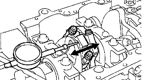 Using a dial indicator, measure the thrust clearance while moving the connecting rod back an a forth.