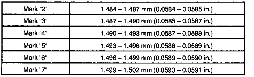 Standard clearance: 0.040 - 0.058 mm (0.0016 - 0.0023 inch)
