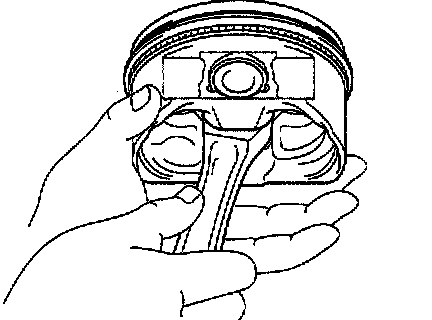 Try to move the piston back and forth on the piston pin. If any movement is felt, replace the piston and pin as a set.