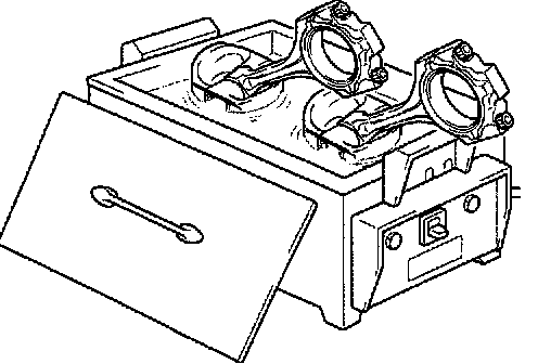 h. Remove the 2 bolts, the connecting rod cap and the lower bearing. (See procedure b and c above)