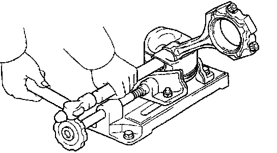 c. Using a plastic-faced hammer and a brass bar, lightly tap out the piston pin and the pin and remove the connecting rod.