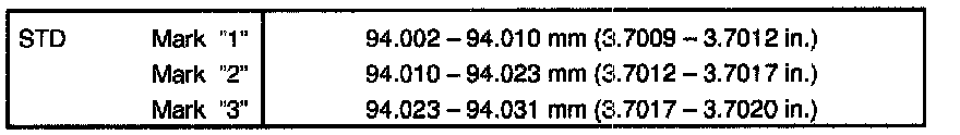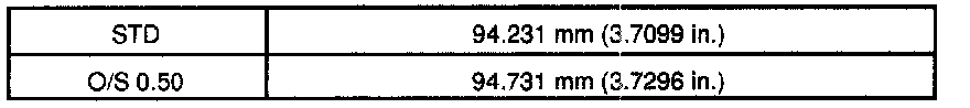 O/S 0.50 piston diameter: 94.402 - 94.430 mm (3.7166 - 3.7177 inch)