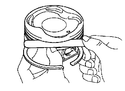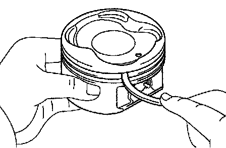 b. Inspect the piston ring groove clearance. Using a feeler gauge, measure the clearance between new piston ring and the wall of the ring groove.