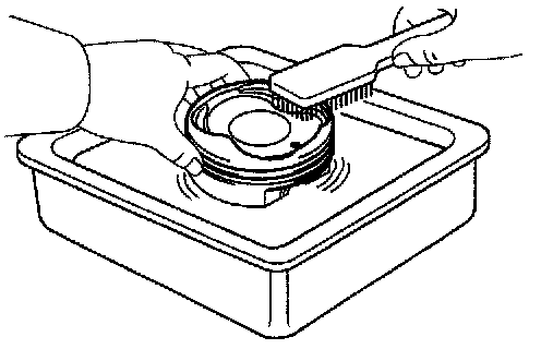 c. Using solvent and a brush, thoroughly clean the piston.