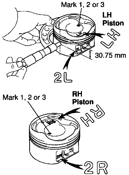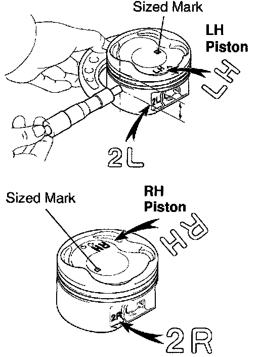 HINT: The shape of the piston varies for the LH and RH banks. The LH piston is marked with "LH" and "2L", the RH piston with "RH" and "2R".