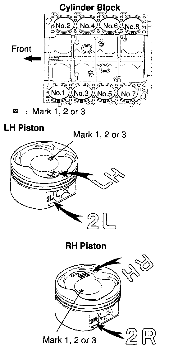 Use a piston with the same number mark as the cylinder diameter marked on the cylinder block.