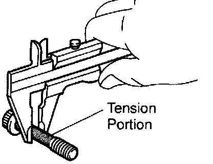 g. Using vernier calipers, measure the tension portion of the connecting rod bolt.