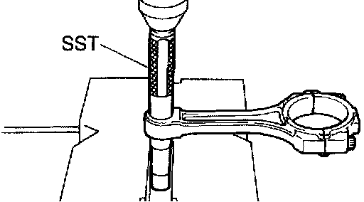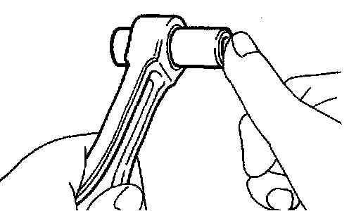 e. Check the piston pin fit at normal room temperature. Coat the piston pin with engine oil, and push it into the connecting rod with your thumb.