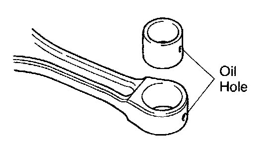 b. Align the oil holes of a new bushing and the connecting rod.