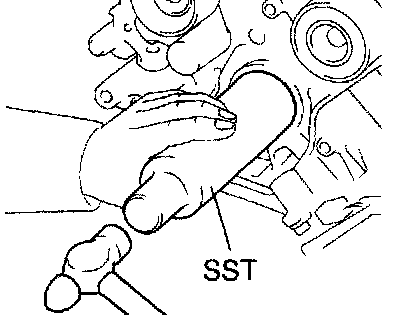 2. Using SST and a hammer, tap in a new oil seal until its surface is flush with the oil pump body edge.